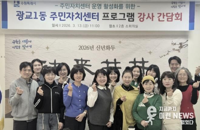 이날 간담회에서는 광교1동장과 주민자치회장 및 주민자치회 임원진, 주민자치센터 프로그램 강사 등 20여 명이 참석해 2026년 1분기 주민자치센터 프로그램 운영 후기를 공유하고 2분기 운영 방향을 논의했다. 참석자들은 주민자치센터 프로그램의 내실 있는 운영과 활성화를 위해 다양한 의견을 나누며 소통의 시간을 가졌다.