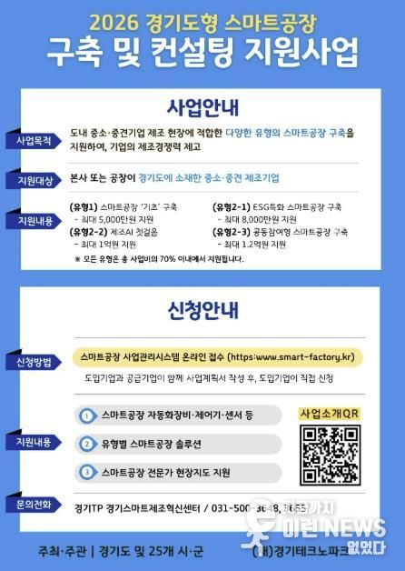 이런뉴스(e-runnews) 김삼성 기자 | 수원특례시가 경기도와 함께 ‘2026년 경기도형 스마트공장 구축 및 컨설팅 지원사업’ 참여 기업을 공모한다. 경기도 22개 시군 소재 중소제조기업을 지원하는데, 수원시 기업은 4개사를 선정할 예정이다.