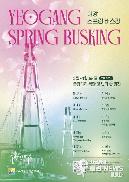 이런뉴스(e-runnews) 김삼성 기자 | 여주세종문화관광재단은 남한강의 수려한 자연경관과 출렁다리 경관을 배경으로 시민과 관광객에게 색다른 문화 향유 기회를 제공하기 위해 ‘2026년 상반기 여주 남한강 출렁다리 버스킹 공연’을 운영한다고 밝혔다.