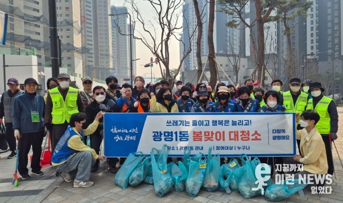 이런뉴스(e-runnews) 김삼성 기자 | 광명시 광명1동 행정복지센터는 지난 17일 깨끗하고 쾌적한 생활환경을 조성하기 위해 유관 단체와 주민들과 함께 ‘봄맞이 대청소’를 실시했다.