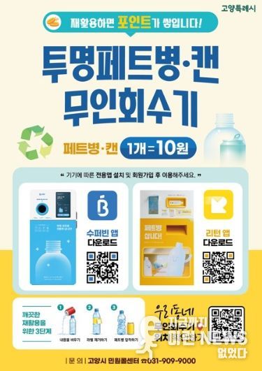 한편, 고양시는 무인회수기 외에도 재활용품 교환사업(종이팩·폐건전지 등을 종량제봉투로 교환), 고양 자원순환가게(재활용품 유가 보상) 등 시민 중심의 친환경 정책을 활발히 추진하고 있다.