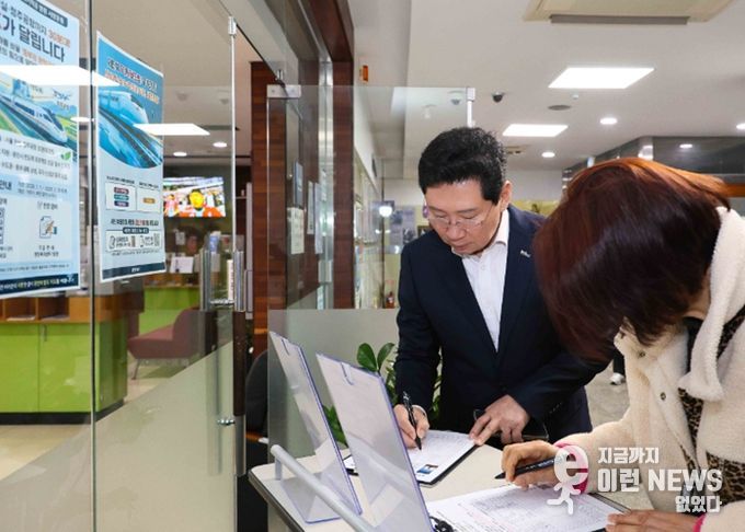 이 시장은 이날 센터 1층에 마련된 서명부에 이름을 적은 뒤 행정의 일선에서 애쓰는 성복동 직원들을 격려했다.