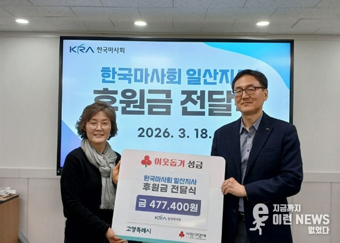 이번 기부금은 약 47만 원으로, 한국마사회 일산지사 건물 내 설치된 모금함에 시민들이 자발적으로 기부한 금액이다.