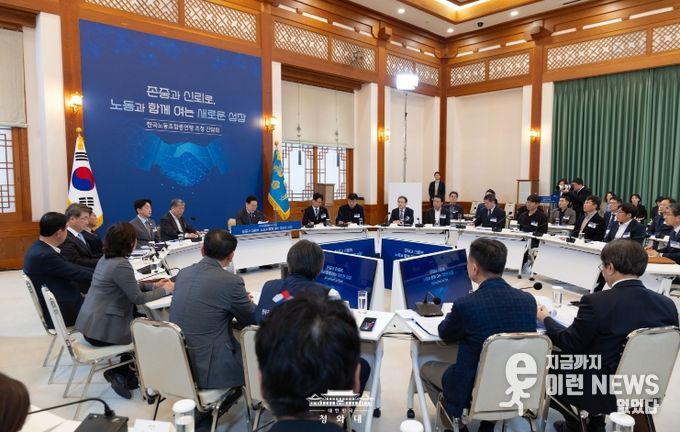 이 대통령은 지난주 경제사회노동위원회 1기가 출범한 사실을 언급하며 "노사정이 사회적 대화로 오랜 기간 누적된 문제를 해결하는 방법을 모색하고 미래 지향적인 논의가 되길 바란다"고 당부했다.