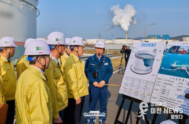 이런뉴스(e-runnews) 김삼성 기자 | 이재명 대통령은 오늘 오후 충남 서산시 대산읍에 위치한 한국석유공사 서산비축기지를 방문해 비축유 관리 상황을 점검하고 주요 석유화학기업들과 현장 간담회를 가졌다.