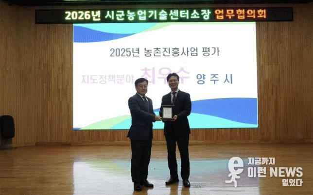 이런뉴스(e-runnews) 김삼성 기자 | 양주시가 지난 26일 경기도농업기술원에서 개최된 ‘2025년도 농촌진흥사업평가 분야별 우수사례 발표평가’에서 지도정책분야 최우수기관으로 선정됐다.