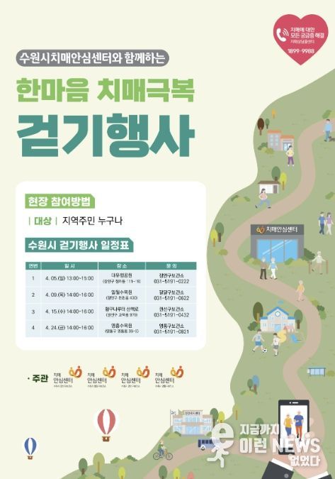 이런뉴스(e-runnews) 김삼성 기자 | 수원시보건소 치매안심센터가 4월 5일부터 24일까지 ‘2026 한마음 치매극복 걷기 행사’를 연다.