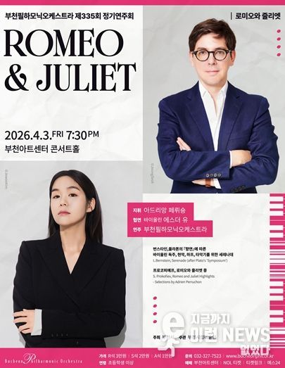 이런뉴스(e-runnews) 김삼성 기자 | 부천필 상임지휘자 아드리앙 페뤼숑(Adrien Perruchon)의 지휘와 바이올리니스트 에스더 유(Esther Yoo)의 협연으로 진행되는 이번 공연은 번스타인 〈세레나데〉와 프로코피예프 〈로미오와 줄리엣〉 발췌곡을 통해 ‘사랑’이라는 보편적 주제를 서로 다른 음악 언어로 조명한다. 철학적 사유와 비극적 격정이 교차하는 이번 무대는 두 작곡가가 그려낸 사랑의 다양한 면모를 한 자리에서 만나는 시간이 될 예정이다.