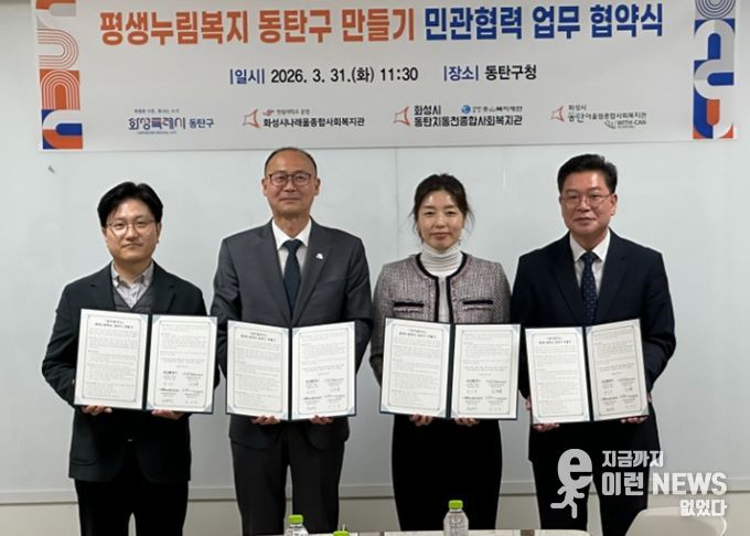 주요 협약 내용은 ▲동탄구 복지지도 구축 및 공유 ▲찾아가는 복지 상담소 운영 ▲민·관 협력 네트워크 구축 및 사례 연계 등이다. 평생누림복지는 주민이 생애 전반에 필요한 복지 서비스를 언제 어디서나 누릴 수 있도록 지원하는 통합복지 체계를 의미한다.