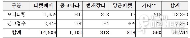2026년 2월부터 3월까지 프로야구 암표 신고·모니터링 결과, 약 1만 6천여 건이 확인됐다. 특히 개막전(3. 28.~29.) 전후로는 정가 대비 최대 약 13배 고액 거래, 동일 계정 다량 좌석 확보 및 재판매 등 조직적 거래 정황이 다수 확인됐다. 이 중 다량·연석 판매, 과도한 웃돈 거래, 동일 계정 반복 거래 등 부정거래 의심 사례를 분석․파악해 경찰청에 수사를 의뢰했다.