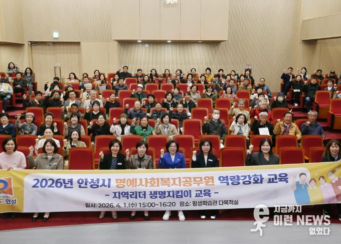 이런뉴스(e-runnews) 김삼성 기자 | 안성시는 지난 4월 1일 평생학습관 다목적실에서 명예사회복지공무원 150여 명을 대상으로 '지역리더 생명지킴이' 교육을 실시했다.