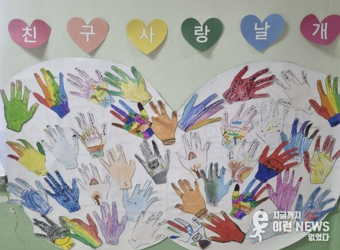 또한 학생들은 학급별로 ‘친구사랑 5계명’을 만들고 함께 선서하며 학교폭력 없는 학교를 만들 것을 다짐했다. 친구에게 감사의 마음을 담은 카드와 선물을 전달하는 활동을 비롯해 편지쓰기, 친구 캐릭터 그리기, 친구 이름으로 삼행시 짓기 등 다양한 친구사랑 프로그램도 함께 운영됐다.