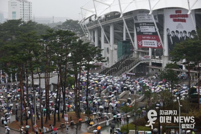 이런뉴스(e-runnews) 김삼성 기자 | ‘BTS 월드투어 아리랑 in 고양’이 열리는 고양종합운동장, 9일 비가 내리는 궂은 날씨에도 공연장과 인근 상가까지 BTS 콘서트를 즐기기 위해 방문한 국내외 관람객으로 가득찼다.