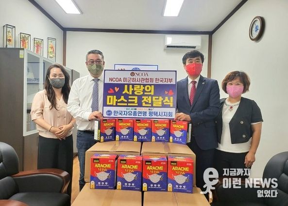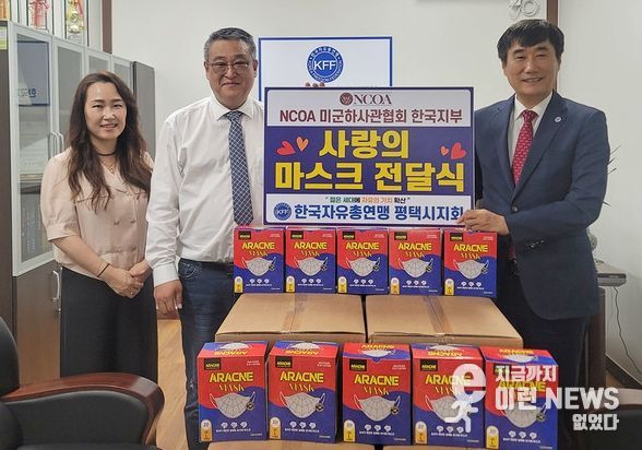 이런뉴스(e-runnews) 김삼성 기자 | NCOA 미군하사관협회 한국지부(지부장 노용재, 사무총장 김윤이)는 지난 11일 한국자유총연맹 평택시지회에 아라크네 마스크를 기부 전달했다.