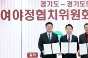이런뉴스(e-runnews) 김삼성 기자 | 경기도의회 국민의힘은 4일, 도의회 예담채에서 열린 ‘제1차 도의회-도 여야정협치위원회 전체회의’에서 ‘2026년도 본예산 협치예산’ 및 ‘특별조정교부금 제도 개선’에 합의했다고 밝혔다. 이날 행사에는 도의회에서 백현종 국민의힘 대표의원과 김진경 의장, 최종현 더불어민주당 대표의원을 비롯해 양당 총괄수석부대표와 수석정책위원장 및 수석대변인이 참석했다. 경기도에서는 김동연 도지사와 고영인 경제부지사를 포함해 협치수석, 기획조정실장, 균형발전기획실장 등이 자리했다. 이번 전체회의는 지난 8월 출범한 도의회-도 여야정협치위원회 협약식과 현판식에 이은 첫 번째 만남이다. 행사는 경과보고 및 ▲도-도의회 2026년 본예산 협치예산 합의문 ▲도-도의회 특별조정교부금 제도 개선 합의문 내용에 관한 설명이 이어진 후 양당 대표의원과 경제부지사가 합의문에 서명하는 것으로 진행됐다. 도-도의회 2026년 본예산 협치예산 합의문의 골자는 ▲도민 생활 안정과 지역경제 회복 추진 ▲따뜻한 복지 환경 조성 ▲도민 이동권 확대 ▲지속 가능한 성장 기반 마련 ▲재난 및 기후 위기 선제적 대응이다
