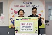 이런뉴스(e-runnews) 김삼성 기자 | 의정부시 신곡2동주민센터는 11월 5일 기초생활보장수급자 정의녀 할머니(82세)가 성금을 기탁하며 ‘100일간 사랑릴레이 배턴 잇기’의 첫걸음을 내딛었다고 밝혔다. 정의녀 할머니는 넉넉하지 않은 형편에도 생활비를 아껴 모은 100만 원을 주민센터에 전달했다. 지난해에도 같은 금액을 기탁한 할머니는 올해 100일간 사랑릴레이 첫날에 맞춰 다시 성금을 전하며, 이웃사랑을 실천하는 시민의 본보기가 되고 있다. 정의녀 할머니는 “적은 금액이라 부끄럽지만 어려운 이웃들에게 조금이나마 도움이 되길 바란다”며 “죽기 전까지는 계속해서 기부할 생각”이라고 전했다. 이상현 동장은 “어려운 형편 속에서도 해마다 나눔을 실천해 주시는 정의녀 할머니의 기부가 지역사회 나눔 문화 활성화에 마중물이 되길 바란다”며 “전달받은 성금은 복지 사각지대 해소를 위해 소중히 사용하겠다”고 말했다.