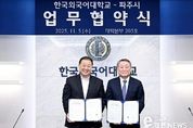 이런뉴스(e-runnews) 김삼성 기자 | 파주시는 지난 5일, 한국외국어대학교 대학본부에서 한국외국어대학교와 ‘일생일대 프로젝트’를 기반으로 한 ‘평생교육 진흥 업무협약’을 체결했다고 밝혔다. 이번 협약은 파주시의 대표적인 대학 연계 평생학습 사업인 ‘일생일대 프로젝트’를 한국외대와 함께 2026년부터 공동 기획·운영하기 위해 추진된 것으로, 세계 언어교육과 문화 이해 역량을 강화해 시민의 국제적 소통 능력과 평생학습 기회를 넓혀 나갈 계획이다. ‘일생일대 프로젝트’는 읍면동 평생학습센터와 대학을 1대1로 연결해 시민이 생활권 안에서 손쉽게 대학 교육을 접할 수 있도록 한 경기도 최초의 평생학습 모델이다. 이날 협약식에는 김경일 파주시장, 김태훈 문화교육국장, 최희진 평생교육과장 등 파주시 관계자와 박정운 한국외대 총장, 대외협력처장, 사업지원처장, 서울평생교육원장 등이 참석했다. 양 기관은 상호 협력을 통해 시민 맞춤형 교육 프로그램 개발 및 운영에 힘쓸 것을 약속했다. 김경일 파주시장은 “한국외대와의 협약은 파주시 평생학습의 지평을 국제적 수준으로 넓히는 중요한 계기가 될 것”이라며 “외국어