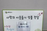 이런뉴스(e-runnews) 김삼성 기자 | 동두천시 불현동 새누리교회는 11월 3일 불현동 행정복지센터에 백미 45kg을 전달했다고 밝혔다. 새누리교회는 불현동에 위치한 개신교 교단으로, 매년 나눔을 실천하며 지역사회에 따뜻한 온정을 나누고 있다. 민경엽 담임목사는 “지역의 소외된 이웃들이 추운 겨울 따뜻한 연말을 보낼 수 있길 바란다”며 “작은 정성이지만 도움이 됐으면 좋겠다”라고 전했다. 김영미 불현동장은 “지역사회를 위해 꾸준히 나눔을 실천해 주신 데 감사드리며, 후원해 주신 백미는 도움이 필요한 취약계층에 소중히 전달하겠다”라고 말했다.