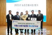 이런뉴스(e-runnews) 김삼성 기자 | 수원특례시 농업기술센터가 ‘2025년 경기도 농촌진흥사업 평가’에서 우수 기관으로 선정돼 경기도지사 표창을 받았다. 시상은 26일 열린 시군농업기술센터소장 업무협의회 중 진행됐다. 경기도는 20개 시군 농업기술센터를 대상으로 2025년 농촌진흥사업 추진 실적을 ▲지도정책 ▲기술보급 ▲농촌자원 ▲농촌진흥사업 활성화 등 11개 분야 33개 지표를 기준으로 평가했다. 수원시 농업기술센터는 농업교육과 도시농업을 체계적으로 운영하고, 농업인 맞춤형 기술 지원을 강화한 점에서 높은 평가를 받았다. 또 ▲신규농업인 양성 교육 운영 ▲시민농장·과수공원 등 도시농업 활성화 ▲농업인 단체 육성 ▲신기술 보급 확대 등 다양한 사업을 추진하며 농업인의 편익과 소득 증가에 이바지한 점도 좋은 평가를 받았다. 수원시 관계자는 “이번 수상은 농업인의 삶의 질 향상과 지역 농업 경쟁력 강화를 위한 노력이 인정받은 결과”라며 “앞으로도 변화하는 농업 환경에 대응할 수 있도록 맞춤형 기술 지원과 교육을 지속해서 추진하겠다”고 말했다.