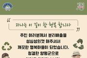 이런뉴스(e-runnews) 김삼성 기자 | 양평군은 관내 쓰레기 배출장소 및 취약지역의 무단투기 방지를 위해 주민 참여 기반의 청결유지 캠페인을 추진하고 있다고 밝혔다. 이번 캠페인은 기존의 폐기물 불법투기 단속 위주의 방식에서 벗어나 주민 참여를 통해 무단투기를 선제적으로 방지하고자 마련된 것으로, 주요 쓰레기 거점 배출장소와 분리수거장, 무단투기 취약지역 등에 주민 참여를 유도하는 안내판을 붙이는 방식으로 시행되고 있다. 기존 무단투기 방지 안내판은 폐기물관리법에 따른 과태료나 처벌 중심의 경고성 문구가 위주였으나, 이번 캠페인을 통해 설치되는 안내판에는 주민의 분리배출에 대한 감사의 메시지와 이를 통한 양평군의 발전 내용을 담고 있다. 한 주민은 “과태료 경고문만 보던 곳에 따뜻한 칭찬 문구가 붙어 있어 마음이 따뜻해졌다”며 “양평군에 대한 신뢰와 고마움을 느끼며 스스로 분리배출을 더 잘 실천해야겠다는 생각이 들었다”고 말했다. 전진선 양평군수는 “군민이 체감하는 청결한 양평을 만들기 위해서는 무단투기 방지가 중요하다”며 “군민 여러분의 적극적인 참여를 부탁드리고, 앞으로도 지속적인 홍보와