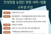 이런뉴스(e-runnews) 김삼성 기자 | 안성시농업기술센터가 지역 농업인의 안정적인 영농 활동을 돕기 위해 오는 31일까지 ‘안성맞춤 농업인 경영·세무·법률 교육’ 교육생을 모집한다. 이번 교육은 전문가 특강을 통해 농가 운영 중 발생할 수 있는 경영적, 법적 문제를 사전에 예방하고 해결할 수 있는 역량을 키워주기 위해 마련됐다. 교육은 오는 4월 6일부터 30일까지 주제별 지정된 날짜에 진행된다. 모집 분야는 ▲농업 경영 ▲농업 세무 ▲농업 법률 등 3개 과정이며, 분야별로 30명씩 총 90명을 선발한다. 신청 인원이 초과할 경우 내부 선발 기준에 따라 교육생을 최종 선정할 예정이다. 신청 자격은 농업 경영에 관심 있는 안성시민이라면 누구나 가능하며, 접수는 3월 31일까지다. 참여를 희망하는 시민은 이메일을 보내거나 농업기술센터 농업지도과(보개원삼로 219)를 방문해 신청하면 된다. 시 관계자는 “농업인의 눈높이에 맞춘 경영·법률·세무 전문가 특강이 농가 역량을 강화하는 좋은 기회가 될 것”이라며, “안성 농업의 내실을 다지고 싶은 시민 여러분의 많은 관심과 참여를 바란다”고 말했다.