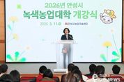 이런뉴스(e-runnews) 김삼성 기자 | 안성시는 지난 11일 안성시농업기술센터에서 ‘제23기 안성시녹색농업대학’ 개강식을 열고 본격적인 교육에 들어갔다고 밝혔다. 이날 행사에는 신입생과 동문 회원 등 80여 명이 참석해 새로운 출발을 다짐했으며, 개강식 이후에는 학과별 전문가 특강을 진행해 교육생들의 큰 호응을 얻었다. 올해 제23기 과정은 ▲농창업학과 ▲스마트 귀농귀촌학과 ▲지역농산물 개발학과 등 3개 학과로 운영된다. 최종 선발된 63명의 입학생은 오는 8월까지 약 6개월간 총 20회(90시간)에 걸쳐 체계적인 전문 교육을 받게 된다. 시 관계자는 “녹색농업대학의 힘찬 출발을 진심으로 축하하며, 이번 교육을 통해 현장 실무 능력을 갖춘 전문 농업인으로 거듭나길 기대한다”고 전했다. 한편 안성시녹색농업대학은 2025년 농촌진흥청 전국 농업인대학 운영평가 ‘대상(1위)’에 이어, 2026년 경기도 농업인대학 운영평가에서도 ‘최우수상(1위)’을 휩쓰는 등 전국 최고 수준의 전문농업인력 양성 기관으로 인정받고 있다.
