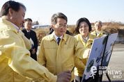 이런뉴스(e-runnews) 김삼성 기자 | 28일 안성에서 19번째 민생경제 현장투어에 나선 김동연 경기도지사가 경기도 최남단 안성의 거점소독시설을 찾아 초동 방역 상황을 긴급 점검했다. 이번 점검은 지난 25일 충남 당진에서 발생한 아프리카돼지열병에 대한 선제적 방역 조치의 하나로 마련됐다. 김 지사는 현장에서 터널식 소독조에서 진행되는 가축 방역 과정을 지켜본 후 관계자들을 격려하고 겨울철 동물방역에 최선을 다해줄 것을 당부했다. 김 지사는 “조류인플루엔자와 아프리카돼지열병이 계속 전파 중이어서 걱정이다. 경기도는 빠른 대응, 강력한 방역, 신속한 지원의 3대 원칙으로 동물방역에 대처하겠다”며 “축산농가 보호와 축산업 발전을 위해 최선을 다하겠다. 축산농가 종사자 여러분들도 방역과 예방에 협조를 부탁드린다”고 강조했다. 돼지 33만 두를 사육하는 안성(도내 2위, 전국 4위)은 평택·화성과 근접한 돼지 사육 중심지다. 경기도는 방역대 설정, 이동 제한 등 광범위한 방역 조치를 시행하고 있다. 현장에서 김보라 안성시장, 윤종군 국회의원과 즉석 스탠딩 간담회 가져 소독시설