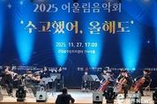 이런뉴스(e-runnews) 김삼성 기자 | 남양주시는 27일 남양주시북부장애인복지관이 진접읍주민자치회와 함께 ‘2025 어울림음악회 수고했어, 올해도’를 성황리에 개최했다고 밝혔다. 이번 행사는 한 해 동안 학업에 매진한 청소년을 응원하고, 장애인과 비장애인이 함께 어우러지는 포용적 문화예술 향유 기회를 제공하기 위해 마련됐다. 행사는 진접읍주민자치센터 크낙새홀에서 열렸으며, 사회복지공동모금회와 우리은행 진접금융센터점이 후원했다. 현장에는 봉선사 주지이자 사회복지법인 봉선복지재단 대표이사인 호산스님을 비롯해 지역 청소년과 주민 등 300여 명이 참석해 자리를 함께했다. 공연은 △샘웨이브 오케스트라의 연주 △얼쑤 예술단의 사물놀이 △필리체보체 앙상블과 민요자매의 전통·클래식 무대로 시작됐다. 이어 △광동중학교 댄스동아리 ‘레디언트’ △상월비보이 ‘이에이트크루’가 청소년의 열정과 스트리트 감성을 더했고, △대경대학교 연기예술과의 뮤지컬 공연 △K-실용음악과의 밴드 무대가 마무리를 장식해 관객의 호응을 이끌었다. 특히 경복대학교 교직원들이 자원봉사자로 참여해 공공기관, 대학, 지역사회가 함께 만드는 상