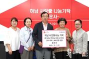 이런뉴스(e-runnews) 김삼성 기자 | 지난 1일 청운사는 하남 사랑愛나눔 성품 및 성금으로 라면 100박스, 백미 10kg 100포, 성금 500만원(1,060만원 상당)을 기탁하고 기탁식을 가졌다. 청운사는 2020년부터 관내 취약계층을 위한 성품 및 성금 기탁을 통해 꾸준한 나눔 문화를 실천하고 있으며, 올해도 하남시에 성품 및 성금을 기탁하며 나눔을 실천했다. 이날 기탁식에는 이현재 하남시장을 비롯하여 청운사 노혜원 사무장, 조순례 신도회장, 김영숙 부회장, 전인숙 총무가 참석하여 자리를 빛냈다. 노혜원 사무장은“지역내 어려운 이웃들에게 조금이나마 도움이 되길 바라고, 풍성한 한가위 명절이 되길 바란다”고 전했다. 이현재 하남시장은“2020년부터 끝임없이 나눔을 실천해 준 청운사에 감사드리며, 어려운 이웃이 따뜻한 추석이 되실 수 있도록 잘 전달하겠다”고 말했다. 이날 기탁한 성금 및 성품은 동 행정복지센터 및 하남시푸드뱅크를 통해 취약계층에게 배부될 예정이다.