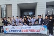 이런뉴스(e-runnews) 김삼성 기자 | 포항시는 ‘제64회 경북도민체육대회’ 사전경기 농구 남자고등부 8강전에서 구미시를 32대 28로 제압하고 4강에 진출했다. 이번 경기는 지난 27일 예천에서 열린 가운데, 포항시는 이번 대회 유력 우승 후보로 꼽히는 구미시를 상대로 경기 초반부터 팽팽한 접전을 펼친 끝에 값진 승리를 거뒀다. 특히 이번 8강전은 포항시 농구 종합우승을 향한 중요한 분수령이 되는 경기로, 선수들은 끝까지 집중력을 유지하며 투혼을 발휘해 의미 있는 결과를 만들어냈다. 이날 경기장에는 포항시 체육산업과와 북구보건소, 송도동, 송도동체육회, 포항시체육회 관계자 등 100여 명이 함께 응원에 나서 선수들에게 큰 힘을 보탰다. 또한 박재관 포항시 자치행정국장이 직접 현장을 찾아 선수단을 격려하며 사기 진작에 힘을 더했다. 서장원 포항시농구협회장은 “선수들이 끝까지 최선을 다해 좋은 결과를 낼 수 있도록 적극 지원하겠다”며 “남은 경기에서도 마지막까지 최선을 다하겠다”고 말했다. 박재관 자치행정국장은 “어려운 경기 속에서도 끝까지 포기하지 않고 값진 승리를