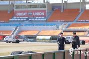 이런뉴스(e-runnews) 김삼성 기자 | 춘천시가 11일 송암스포츠타운 주경기장에서 열리는 강원FC의 아시아챔피언스리그 엘리트(ACLE) 홈경기를 앞두고 경기장 안전 확보와 원활한 경기 운영에 만전을 기하고 있다. 육동한 춘천시장은 9일 송암스포츠타운을 찾아 혹한기 경기 개최에 따른 그라운드 상태와 및 한파로 인한 관람석 결빙 등의 안전관리 상태를 최종 점검했다. 앞서 시는 한파 속 강원FC의 아시아 무대 홈경기가 춘천에서 안정적으로 개최될 수 있도록 춘천도시공사, 강원FC와 함께 기관별 역할 분담과 현장 대응 체계를 공유해 왔다. 이와 관련, 춘천도시공사는 잔디 보호를 위해 차광막을 설치하고 경기장 주변 제설제 사전 살포와 보행 동선 안전점검을 실시했다. 최근 한파 상황을 종합적으로 고려해 경기 당일 잔디 상태에 영향을 최소화할 수 있도록 이날 오전 차광막을 제거하는 등 그라운드 관리에 집중했다. 강원FC는 원정석을 포함한 관람석 전반에 대한 제설 및 결빙 제거 작업을 담당하며 관람객 안전 확보에 주력했다. 육동한 시장은 “혹한기 속에서 열리는 국제대회인 만큼 선수들의 경기 여건과 관람객 안전