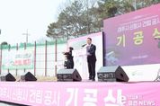 이런뉴스(e-runnews) 김삼성 기자 | 여주시는 26일 가업동 신청사 건립 부지에서 ‘여주시 신청사 건립 공사 기공식’을 개최하고 지난 20여 년간 시민들의 숙원이었던 신청사 건립 사업의 본격적인 시작을 알렸다. 이번 기공식은 여주시가 공론화위원회를 구성하고 숙의 토론이라는 공론화 과정을 거쳐 가업동으로 신축 이전을 확정하고, 착공에 필요한 모든 행정절차를 마친 3년 9개월 동안의 신청사 건립 추진 경과와 향후 공사 계획을 주민들과 공유하기 위해 열렸다. 이날 행사는 신청사 착공을 축하하는 시민들의 축하 영상을 시작으로 신청사 건립 사업 동영상 상영, 신청사 건립 추진 경과보고, 여주시민합창단의 축하공연 순으로 이어졌다. 총 4만 7천㎡ 부지에 지하 1층 지상 7층 규모로 조성되는 신청사는 그동안 청사 분산으로 인한 시민의 불편을 개선해 행정서비스의 질을 한층 높이는 한편, 부족했던 주차 공간 또한 600면으로 대폭 확대해 주민의 이용 불편을 해소한 행정 복합 공간으로 설계됐다. 또한 신청사를 중심으로 약 48만 5천㎡ 규모의 여주역세권 제2지구 도시개발사업을 함께 추진하고 있어 여주의 새로운