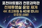 이런뉴스(e-runnews) 김삼성 기자 | 포천문화관광재단이 운영하는 포천아트밸리 천문과학관이 약 1년간의 준비와 개선 사업을 마치고, 3월 4일부터 새롭게 단장한 천체투영실 운영을 재개한다. 2014년 개관한 포천아트밸리 천문과학관은 연간 약 30만 명의 관람객이 찾는 경기 북부 대표 과학문화시설로 자리 잡아 왔다. 그러나 천체투영실 시설 노후화로 관람객 이용에 불편이 발생함에 따라, 포천문화관광재단은 지난해부터 시설 개선 사업을 추진했다. 이번 개선 사업은 ‘오감을 자극하는 몰입형 우주 체험’을 목표로 진행됐다. 기존 장비를 전면 교체하고 4케이(K) 초고해상도 영상 시스템을 도입해 실제 우주 공간에 있는 듯한 생생한 시각적 경험을 제공하도록 구성했다. 또한 영상 흐름에 따라 좌석이 움직이는 모션 장비를 설치해 4디(D) 체험형 콘텐츠를 구현했다. 신규 영상 콘텐츠 ‘콤콤(미지의 행성을 찾아 떠나는 우주 여행)’을 비롯해 스카이다이빙, 달 탐사 등 다양한 체험형 영상을 순차적으로 상영할 예정이다. 이를 통해 어린이들에게는 우주와 과학에 대한 꿈과 호기심을, 성인 관람객에게는 색다른 과학문화 체험을 제공할