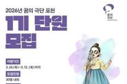이런뉴스(e-runnews) 김삼성 기자 | 포천문화관광재단은 지역 아동·청소년을 위한 문화예술교육 프로그램 ‘2026 꿈의 극단 포천’의 1기 신규 단원을 오는 3월 12일까지 모집한다. ‘꿈의 극단’은 문화체육관광부가 주최하고 한국문화예술교육진흥원과 포천문화관광재단이 주관하며 포천시가 후원하는 사업으로, 아동·청소년이 예술 활동을 통해 자존감을 키우고 공동체 의식을 함양할 수 있도록 지원하는 문화예술교육 프로그램이다. 이번 ‘2026 꿈의 극단 포천’은 일반적인 연극 교육을 넘어 한국 고유의 전통 소리와 춤, 악기가 어우러지는 ‘국극(전통 뮤지컬)’을 특화 교육 과정으로 운영한다. 이를 통해 지역 아동·청소년들이 전통 예술을 놀이처럼 친숙하게 접하고, 우리 문화에 대한 이해와 창의적 표현 능력을 함께 키울 수 있도록 지원할 계획이다. 모집 대상은 초등학교 3학년부터 중학교 2학년까지이며, 해당 연령에 포함되지 않는 초등학교 1·2학년 아동도 ‘예비 단원’으로 신청할 수 있다. 모집 인원은 총 30명이다. 최종 선발된 단원에게는 오는 4월부터 11월까지 포천38문화예술창작소에서 매주 월요일 오후