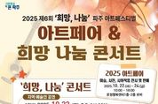 이런뉴스(e-runnews) 김삼성 기자 | 파주시가 주최하고 ㈔한국예술문화단체총연합회 파주지회에서 주관하는 '2025 제6회 ‘희망, 나눔’ 파주 아트페스티벌'이 10월 22일부터 24일까지 3일간 운정행복센터에서 개최된다. 올해로 6회를 맞이한 이번 축제는 다양한 분야의 예술을 매개로 온정을 나누고 희망과 행복을 전하기 위해 마련됐으며, 축제를 통해 발생한 수익금은 어려운 이웃에게 전달되고 있다. 축제 기간 동안 운정행복센터에 파주예총 전문 예술인들의 미술, 사진, 시화 작품 등을 전시하고 판매하는 공간이 운영되며, 23일과 24일에는 지역 예술인 및 초청 가수(전원석, 이규석, 녹색지대)들의 공연 ‘희망, 나눔 콘서트’가 개최된다. 공연 시작 전에는 무료로 가족사진 찍어주기 행사가 진행될 예정이다. 유초자 문화예술과장은 “이번 축제가 어려운 환경에 있는 이웃에게 나눔을 전하는 계기가 되기를 소망한다”라며, “일상 속에서 예술을 가까이 만날 수 있는 이번 축제에 시민 여러분의 많은 관심과 참여를 바란다”라고 말했다.