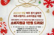 이런뉴스(e-runnews) 김삼성 기자 | 여주시는 오는 12월 22일부터 2025년 연말 여주 경기 살리기 ‘여주사랑카드 소비지원금’을 지원한다고 밝혔다. 여주사랑카드 사용자는 행사 기간인 12월 22일부터 12월 31일까지 ‘여주사랑카드’로 합산 금액 10만원(일반충전금)이상 결제 시 1만원 캐시백을 지원받을 수 있으며, 예산 소진 시 소비지원금 행사는 조기 종료된다. 합산 금액에 농어민 기회소득 등 정책수당은 결제금액에 포함되지 않는다. 연말 크리스마스, 송년회 등 모임이 많은 시기에 소비지원금 지원으로 여주사랑카드 사용자들은 캐시백 혜택을 받아 가계에 도움을 받고, 지역 내 소비 진작으로 지역 소상공인들의 매출 증대에도 긍정적 영향을 미칠 것으로 예상된다. 이충우 여주시장은 “연말 얼어붙은 경기에 시민분들에게 혜택이 돌아갈 수 있는 소비지원금 사업을 추진할 수 있어 기쁘다”라며, “앞으로도 소비자와 소상공인 모두를 만족시킬 수 있는 지역경제 활성화 정책을 적극적으로 추진할 것”이라고 밝혔다. 해당 내용은 ‘경기지역화폐’ 앱 팝업 공지를 통해 안내된다.