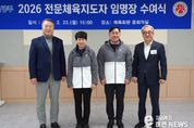 이런뉴스(e-runnews) 김삼성 기자 | 광주광역시체육회가 23일 15시 체육회관 중회의실에서 ‘2026 전문체육지도자 임명장 수여식’을 개최했다고 밝혔다. 수여식에는 전갑수 체육회장, 김영삼 사무처장, 전문체육지도자 등 관계자 50여명이 참석한 가운데 제107회 전국체육대회 등을 앞두고 훈련 지도에 전념하고 있는 지도자들을 임명하고 격려했다. 시 체육회는 육상, 복싱, 펜싱 등 27개 종목에 29명의 전문체육지도자들을 배치하여 지역 선수들의 경기력 향상과 체계적 선수 육성을 통한 지역 체육 경쟁력 강화를 도모한다. 모든 지도자는'국민체육진흥법'에 따른 전문체육지도자 자격을 갖춘 지도자로서 공공성과 전문성을 확보하여 선수 지도, 대회 참가 등 전문체육 전반을 담당한다. 이날 행사에서 지도자들은 올해 대표선수 경기력 향상 및 제107회 전국체전 상위 입상을 위해 최선을 다할 것을 다짐했다. 지난해 개최된 제106회 전국체전에서 광주선수단이 획득한 총 32,626점 가운데 시 체육회 소속 전문체육지도자들이 지도한 선수들이 6,824점을 획득하며 21%를 차지하는 성과를 거둔 바 있다.