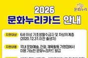 이런뉴스(e-runnews) 김삼성 기자 | 정부 정책에 따라 2026년부터 통합문화이용권(문화누리카드)과 청년문화예술패스 제도가 개편된다. 이에 따라 양주시는 개편 기준에 맞춰 지역대상자를 대상으로 해당 사업을 확대 시행한다고 밝혔다. 통합문화이용권(문화누리카드)은 6세 이상 기초생활수급자와 차상위계층을 대상으로 문화·여행·체육 활동을 지원하는 사업으로, 2026년에는 지원 인원이 16,386명으로 전년 대비 1,687명 증가한다. 또한 1인당 지원 금액도 기존 14만 원에서 15만 원으로 1만 원 인상된다. 특히 청소년(13~18세)과 생애전환기(60~64세) 대상자는 1만 원이 추가 지원돼 총 16만 원을 지원받게 된다. 청년층의 문화 향유 기회를 넓히기 위한 청년문화예술패스도 지원 대상이 확대된다. 2026년 지원 인원은 1,645명으로 전년 대비 727명 증가하며, 지원 연령 역시 기존 19세에서 19~20세로 확대된다. 통합문화이용권(문화누리카드)은 2월 2일부터 누리집 또는 각 읍면동 행정복지센터를 방문해 신청 가능하며, 자세한 사항은 문화누리카드 고객지원센터로 문의하면 된다. &nbs