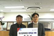 이런뉴스(e-runnews) 김삼성 기자 | 오산교육재단은 지난 15일 ㈜드림앤트 홍우석 대표로부터 오산시 지역 인재 육성을 위한 장학금 600만 원을 기탁받았다고 밝혔다. 홍우석 대표는 오산시 관내 고등학교를 졸업한 지역 출신 기업가로, 학생들의 학업 지원과 교육환경 개선에 보탬이 되고자 지난 2021년 12월 첫 기탁을 시작으로 매월 정기적인 장학금 후원을 이어오고 있다. 현재까지 누적 기탁액은 총 2,500만 원에 달하며, 2026년에도 추가로 600만 원을 기탁할 계획이다. 홍 대표는 “제가 성장한 오산시에 교육 지원을 통해 지역 인재 양성에 기여할 수 있어 뜻깊게 생각한다”며 “이번 장학금이 학생들이 자신의 꿈을 키우고 미래를 준비하는 데 작은 디딤돌이 되길 바란다”고 전했다. 이영빈 오산교육재단 상임이사는 “자신이 성장한 지역사회에 기부로 환원하는 모습은 매우 의미 있고 좋은 본보기”라며 “기탁해 주신 장학금은 학생들이 꿈을 키우고 미래를 설계하는 데 소중히 활용하겠다”고 말했다.