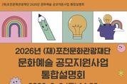 이런뉴스(e-runnews) 김삼성 기자 | 포천문화관광재단은 오는 2월 6일 포천반월아트홀 소극장에서 ‘2026년 문화예술 공모지원사업 통합설명회’를 개최한다. 이번 통합설명회는 지역 예술인과 예술단체를 대상으로 2026년 추진되는 문화예술 공모지원사업 전반을 소개하고, 사업에 대한 이해도를 높여 참여를 활성화하기 위해 마련됐다. 설명회는 2023년부터 매년 개최되고 있으며, 지역에서 활동하는 예술인들과 직접 소통하며 활동 과정에서의 어려움을 공유하고, 지원사업의 수행 방법과 개선 의견을 나누는 자리로 활용되고 있다. 2026년 포천문화관광재단이 추진하는 문화예술 공모지원사업은 총 4개 사업, 약 3억 2천만 원 규모로, 주요 사업은 ‘포천에 도착한 당신의 예술(포·도·당)’, 경기예술지원사업 ‘포천 모든예술31’, 경기 민간문화공간 활성화 사업 ‘포천 모든공간31’, ‘장애인 문화예술 진흥사업’이다. ‘포천에 도착한 당신의 예술(포·도·당)’은 지역 예술인의 지속 가능하고 자생적인 창작활동 기반을 마련하고 시민의 문화예술 향유 기회를 확대하기 위해 2021년부터 추진해 온 사업으로, 전문예술,