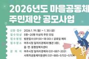 이런뉴스(e-runnews) 김삼성 기자 | 여주시가 2026년 마을공동체 주민제안 공모사업 관련하여 사업설명회를 개최한다. 이번 설명회는 공모사업에 대한 주민들의 이해를 높이고, 공모사업 참여를 희망하는 공동체가 보다 원활하게 공모를 준비할 수 있도록 마련했다. 사업설명회는 2026년 1월 19일 14시 여주시 사회적공동체지원센터(여주시 세종로14번길 18, 중앙프라자 5층) 소회의실에서 진행된다. 2026년 여주시 마을공동체 주민제안 공모사업 참여를 희망하는 신청예정자 참석 가능하며, 주요 내용으로는 ▲ 경기도 마을공동체 이해교육(동영상 시청) ▲ 2025년 여주시 마을공동체사업 성과보고 ▲ 2026년 여주시 마을공동체 주민제안공모사업 설명 ▲ 질의응답 등이 포함된다.