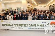 이런뉴스(e-runnews) 김삼성 기자 | 의정부시의회는 지난 13일 의정부시사회복지회관에서 열린‘의정부시사회복지협의회 2026년 신년하례회’에 참석했다. 이번 신년하례회는 새해를 맞이하여 사회복지협의회 회원 기관들이 한자리에 모여 덕담을 나누고, 의정부시의 복지 발전을 다짐하며 인사를 통해 화합을 이루고자 마련됐다. 이날 행사에는 김연균 의장을 비롯해 권안나, 김현채, 정미영, 김태은, 김현주, 강선영, 정진호, 김지호, 조세일 의원과 의정부시장, 국회의원, 관내 사회복지기관 및 시설단체장들이 함께했다. 행사는 신년인사와 함께 새해 덕담, 케이크 커팅 순으로 진행됐으며, 참석한 의원들은 새해에도 의정부시 사회복지협의회 회원 간의 소통과 협력을 통해 지역사회 발전에 기여할 것을 다짐했다. 김연균 의장은“의정부시 복지의 최일선에서 헌신하고 계신 사회복지협의회 회원 여러분께 깊은 감사와 존경을 전한다”며 “의정부시의회는 현장의 목소리를 바탕으로 실효성 있는 복지 정책이 추진될 수 있도록 적극적으로 소통하겠다”고 밝혔다.
