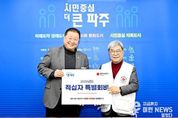 이런뉴스(e-runnews) 김삼성 기자 | 파주시는 13일 파주참사랑회로부터 관내 저소득 취약계층 어르신 생활비 지원을 위한 성금 2,000만 원을 기탁 받았다고 밝혔다. 전달식에는 파주참사랑회 김승기 회장(생능출판사 대표), 김종하 부회장, 반은주 사무국장 및 관계자 등이 참석했으며, 전달된 성금은 파주시 저소득 취약계층 어르신 50명에게 40만 원씩 지급될 예정이다. 파주참사랑회는 2009년 비영리민간단체 설립 이후 17년째 소외계층을 위해 꾸준히 봉사와 나눔을 실천하며, 나눔문화 확산과 건강한 지역사회 조성에 앞장서고 있다. 김승기 파주참사랑회장은 “지역의 어르신들이 조금이나마 일상에 여유를 가지실 수 있기를 바라는 마음으로 회원들이 정성을 모았다”라며 “작은 정성이지만 도움이 필요한 어르신들께 직접 전달되어 따뜻한 버팀목이 되길 바란다”라고 전했다. 김경일 파주시장은 “어려운 이웃을 위해 해마다 변함없이 손을 내밀어 주시는 파주참사랑회 회원 여러분께 깊이 감사드린다”라며 “여러분의 연대와 실천이 파주시 복지행정의 든든한 동반자가 되어, 누구도 소외되지 않는 따뜻한 복지도시 파주를 만드는 데