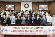 이런뉴스(e-runnews) 김삼성 기자 | 경기도여주교육지원청은 10월 15일, 여주시의회 본회의장에서 '2025 여주 청소년교육의회 발표회 및 폐원식'을 개최했다. 이번 행사는 지난 6개월 동안 여주 청소년들이 직접 기획·참여한 사회참여활동 결과를 공유하고, 의정활동을 마무리하는 자리로 마련됐다. 이날 행사에는 김상성 교육장을 비롯해 박두형 여주시의회 의장과 여섯 명의 시의원, 청소년교육의회 의원 36명 및 학부모가 참석해 청소년들의 성장과 노력을 함께 축하했다. 여주교육지원청 김상성 교육장은 격려사에서 “청소년의 목소리가 지역사회를 변화시키는 힘이 된다”며 “여러분의 작은 실천이 여주의 미래를 밝히는 등불이 되기를 바란다”고 전했다. 또한 박두형 여주시의회 의장은 “여주시의회도 여러분의 제안을 귀 기울여 듣고, 청소년이 행복한 도시를 만드는 데 함께하겠다”고 격려했다. 이날 발표회에서는 청소년의회 5개 상임위원회(환경·복지·인성·시설·교육)가 각 분과별로 진행한 사회참여활동과 정책제안서를 공유했다. 환경위원회는 ‘지속 가능한 여주를 위한 생활 속 실천 방안’을, 복지위