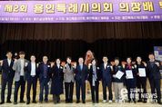 이런뉴스(e-runnews) 김삼성 기자 | 용인특례시의회는 1일 용인시청 에이스홀에서 열린 제107주년 3·1절 기념식에 참석했다. 이날 기념식은 광복회 용인시특례시지회 주관으로 개최됐으며, 유진선 의장을 비롯한 의원들과 이상일 시장, 독립유공자 후손 및 시민 등 약 300명이 참석해 순국선열과 애국지사의 숭고한 희생정신을 기리고 독립의 의미를 되새겼다. 행사는 식전영상 상영을 시작으로 독립선언서 낭독, 모범 독립유공자 유족 표창, 기념사, 기념영상, 축하공연, 만세삼창 순으로 진행됐다. 특히, 유진선 의장은 애국지사 후손 2명에게 표창장을 전수하며 국가를 위해 헌신한 선열들의 공로에 존경과 감사의 뜻을 전했다. 유진선 의장은 기념사를 통해 䄛ܧ운동은 평범한 시민들이 나라의 미래를 위해 함께 일어섰던 역사”라며, 원삼면 좌찬고개를 시작으로 수지·기흥 등 용인 전역으로 확산된 만세운동과 독립운동가들의 헌신을 언급하고 순국선열과 유가족에게 깊은 감사의 뜻을 전했다. 이어, “역사는 기억하고 기록할 때 다음 세대에 온전히 전해진다”며 용인 항일독립운동 역사를 체계적으로 보존·전승할 필요성을 강조하고,