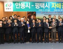 이런뉴스(e-runnews) 김삼성 기자 | 평택시의회는 2월 27일, 안동시청에서 평택시-안동시 자매결연 협약식에 참석해 양 도시의 상생 발전을 다짐했다. 이날 협약식에는 평택시의회 이종원 의회운영위원장, 김영주 기획행정위원장을 비롯하여 정장선 평택시장 등 평택시 대표단이 참석하고 김경도 안동시의회 의장, 권기창 안동시장 등 안동시 대표단이 함께하며 상호 협력 의지를 다졌다. 협약식은 ▲협약서 서명 및 교환 ▲기념품 교환 ▲지역 농특산품 판로 개척 및 로컬푸드 교류 협력 방안 등이 논의됐다. 이어 안동 하회마을을 방문해 문화·관광 교류 확대에 대해서도 의견을 나눴다. 평택시의회 이종원 의회운영위원장은 “평택은 서해안의 관문이자 국제교류의 중심 도시이고, 안동은 깊은 전통과 유교 문화가 뿌리내린 선비문화의 본고장”이라며 “서로 다른 강점과 매력을 지닌 두 도시가 손을 맞잡는 의미는 매우 크다”라고 말했다. 이어 “양 도시의 상생과 우정이 시민이 체감할 수 있는 실질적인 성과로 이뤄지도록 평택시의회도 적극 지원하겠다”라고 밝혔다. 안동시의회 김경도 의장은 “평택시와의 자매결연은 전통과 산업이 만나 새