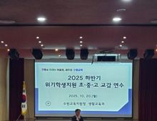 이런뉴스(e-runnews) 김삼성 기자 | 경기도수원교육지원청은 10월 20일 교육복지종합센터에서 초·중·고등학교 교감을 대상으로 ‘2025 하반기 생명살림 및 위기학생지원 특별 연수’를 운영했다. 이번 연수는 최근 관내 학생들의 정신건강 관련 지원 요구가 증가함에 따라, 학교 현장의 위기 대응 역량을 강화하기 위해 특별히 마련된 자리로, 초·중·고 교감 200여 명이 참석했다. 연수는 ▲자살예방법 등 관련 법률 안내 ▲유관기관 및 경기도교육청 정책 소개 ▲수원교육지원청의 위기학생 지원 사업 안내 ▲심리·정서적 고위기 학생 대상 ‘찾아가는 상담 프로그램’ 운영 사례 등으로 구성됐으며, 교육지원청-학교 간 긴밀한 협력체계 구축과 맞춤형 지원 방안 마련에 중점을 두었다. 연수에 참석한 한 교감은 “최근 심리·정서적으로 어려움을 호소하는 학생이 늘어나 학교에서도 대응이 쉽지 않다”며 “이번 연수가 학생, 학부모, 교원이 함께 해결 방안을 모색하는 데 큰 도움이 됐다”고 소감을 전했다. 수원교육지원청 김선경 교육장은 “학생의 생명보다 소중한 것은 없다”며, “한 명의 생명을 지키기 위해 모두가 함께하는