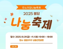 이런뉴스(e-runnews) 김삼성 기자 | 화성특례시의 숨어 있는 보물이자 중심도시인 봉담읍에 위치한 봉담2지구 삼봉근린공원에서 10월의 마지막 31일 오후 2시부터 ‘2025 탄소저감나눔축제’가 개최된다. 2025 탄소저감 나눔축제는 작은 나눔을 통해 탄소 저감의 기본은 물론 청소년들이 아껴 쓰고, 나누어 쓰는 생활 습관을 통해 지구자원의 순환과 절약을 배우고 실천하는 모습을 일상의 현실에서 구현하는 행사로 주요 프로그램은 ‘아나바다’, 자선경매, 태권도 시범, 그리고 학원 폭력 상담 등이 준비되어 있다. 행사를 준비한 열린 공간 다원의 윤서영 대표는 “봉담은 근 10년 사이에 격세지감을 느낄 수 있을 만큼 변했다. 논과 밭이 펼쳐지던 곳에 아파트와 사람들이 이용할 수 있는 광장이 들어서면서 과거 어느 때 보다 많은 사람이 어깨를 부딪치며 살아가는 공간이 됐다. 이곳에서 서로를 알아가는 축제를 열 수 있게 돼서 무척 보람 있다”고 말했다. 이어 화성언론연대 전경만 회장은 “화성은 21세기 대한민국 지방자치단체 중 가장 끓어오르는 지방자치단이다. 하루가 다르게 인구가 늘어나고, 돌아서면 새로운 시설이 들어서는 미래지향적 도시다. 이런 도시의 정점에 서 있는