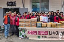 이런뉴스(e-runnews) 김삼성 기자 | 이천시 증포동행정복지센터(동장 김완규)는 지난 9일, 이천시에 소재한 현남건설(대표 신옥남)이 지역 내 홀몸 어르신과 장애인을 위한 100만 원 상당의 ‘행복한 동행’ 성품을 전달했다고 밝혔다. 신옥남 대표는 증포동 나누미봉사단 회원으로 활동하며, 매월 두 차례 홀로 지내는 어르신과 장애인 가정을 찾아 반찬을 전달하는 등 꾸준한 봉사활동을 이어오고 있다. 이번에 기탁한 라면과 계란 등 생필품 역시 봉사단의 밑반찬 나눔 활동과 함께 취약계층에 전달됐다. 신 대표는 “지역에서 함께 살아가는 어려운 이웃들에게 작은 도움이라도 보태고 싶었다”라며 “앞으로도 주변을 살피며 지속적으로 나눔을 실천해 나가겠다”라고 말했다. 김완규 증포동장은 “비 오는 궂은 날씨에도 현장에서 묵묵히 봉사를 이어가고 계신 신옥남 대표님과 나누미봉사단 여러분께 깊이 감사드린다”라며 “이러한 따뜻한 나눔이 지역사회에 큰 힘이 되는 만큼, 행정에서도 복지 사각지대 해소를 위해 적극적으로 지원하겠다”라고 전했다.