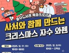 이런뉴스(e-runnews) 김삼성 기자 | 김포시 풍무도서관에서 연말을 맞아 ‘사서와 함께 만드는 크리스마스 자수 와펜’을 오는 12월 17일 오후 4시부터 6시까지 운영한다. 이번 프로그램은 풍무도서관 특화 담당 사서가 직접 진행하며, 가족 단위 맞춤형 체험 활동이라는 점에서 큰 의의가 있다. 김포시민 가족을 대상으로 30분 단위로 예약을 받아 각 팀이 독립적으로 작업할 수 있는 환경을 제공한다. 참여자들은 스스로 선택한 디자인으로 나만의 자수 와펜을 만들고 완성된 작품을 각자 실생활 소지품에 부착해 활용할 수 있다. 12월 3일 오전 10시부터 풍무도서관 홈페이지에서 참여 신청할 수 있으며, 김포시민 가족 4가족(최대 16명)을 선착순으로 모집한다.